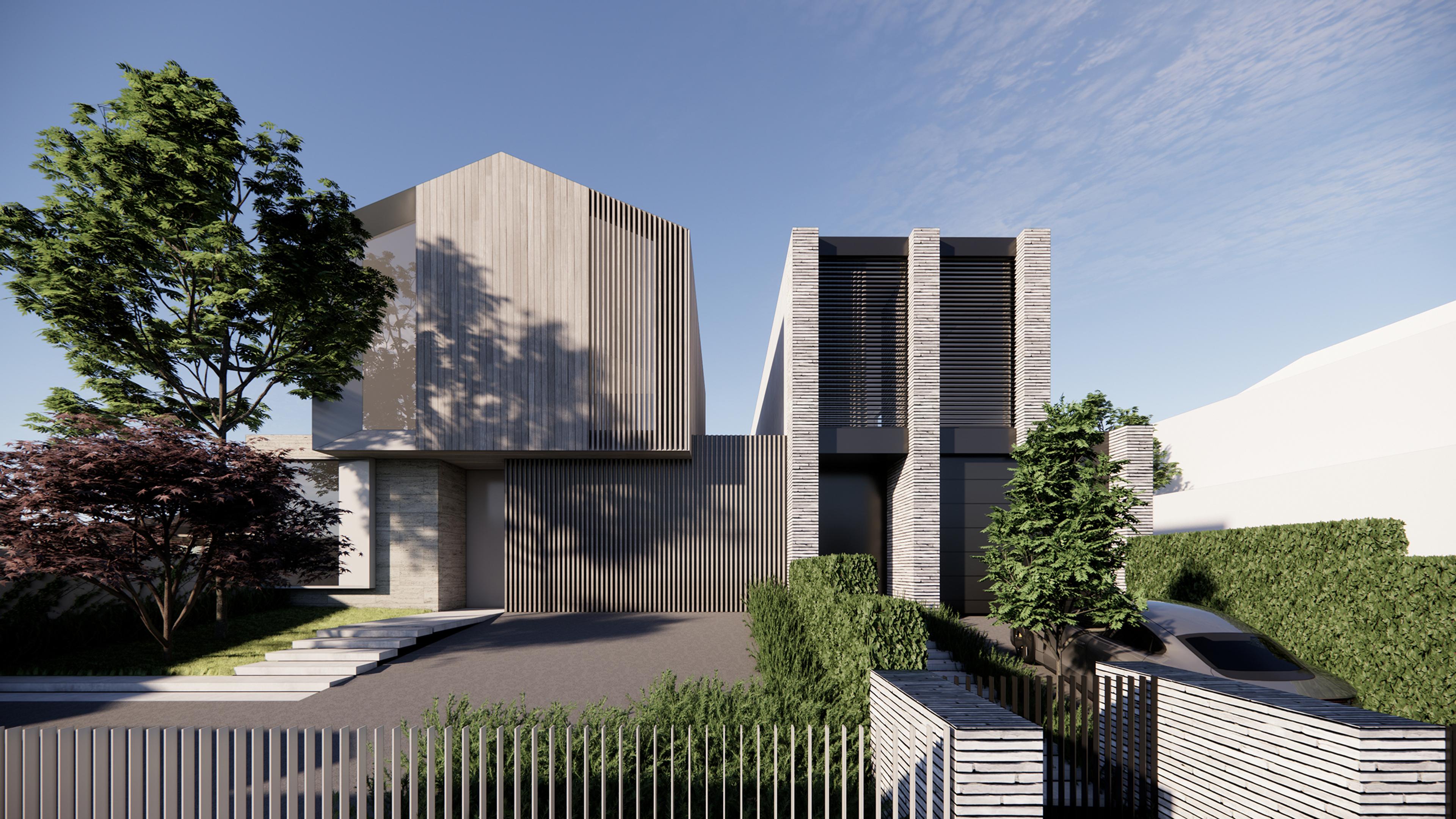 Multi Unit DomesticThis project comprises two architect-designed, double-storey dwellings with integrated garages, delivered in collaboration with Architecton. The homes bring contemporary design and well-crafted detailing to the established Essendon streetscape. Krneta is providing building surveying services to support compliance through all phases of development.