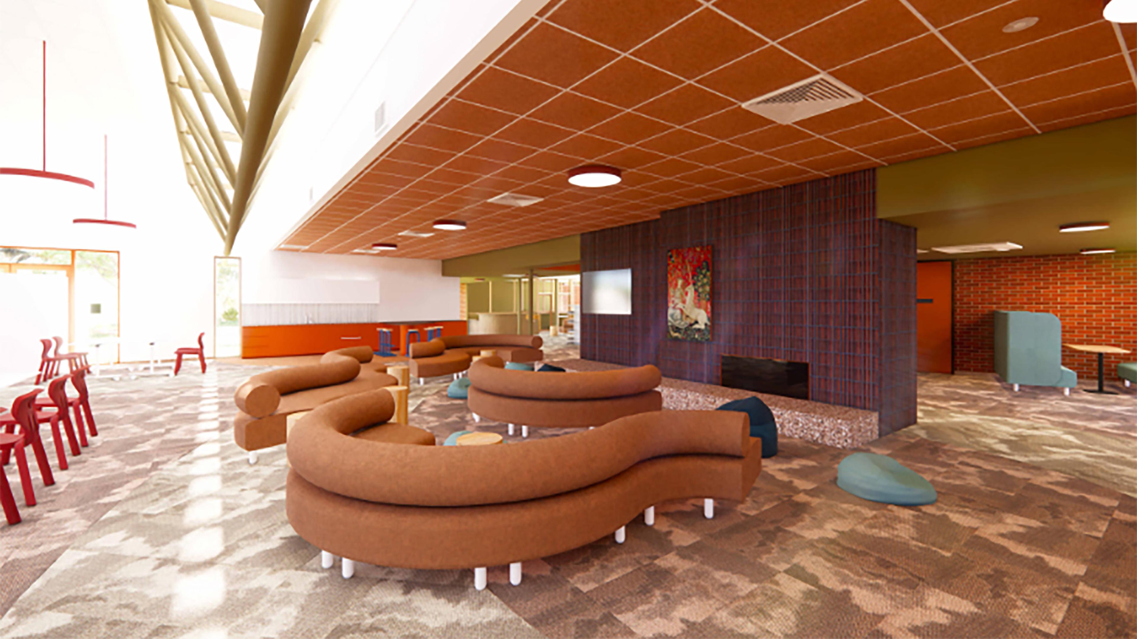 Education (Private)This refurbishment, designed in collaboration with WOWOWA, reimagines the school library as a vibrant and adaptable learning hub. The project introduces new presentation spaces, classrooms and dedicated study areas, creating an environment that supports both collaborative and independent learning. A warm palette of earthy tones has been carefully selected to establish a calming, non-stressful atmosphere, where muted reds, natural timber accents and textured finishes bring a sense of comfort and approachability. With Krneta guiding compliance and approvals throughout the process, the revitalised library provides students with a contemporary, welcoming and inspiring place to learn.